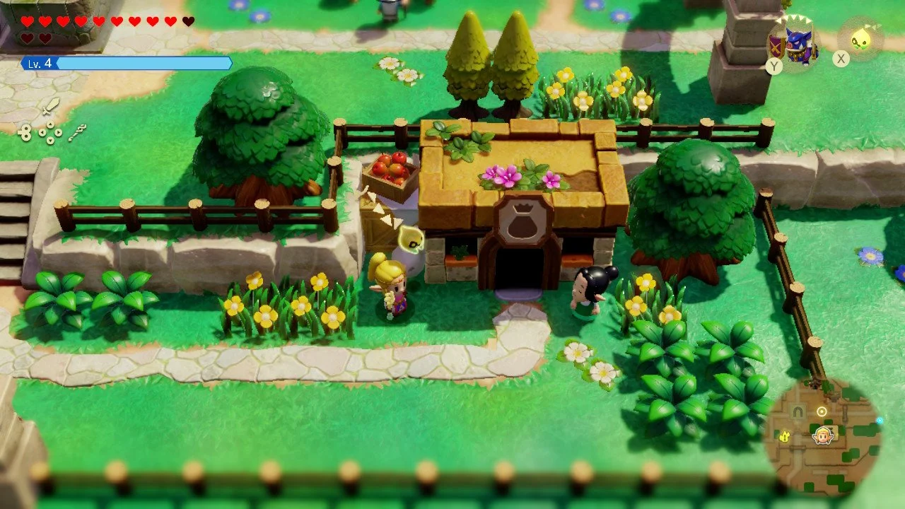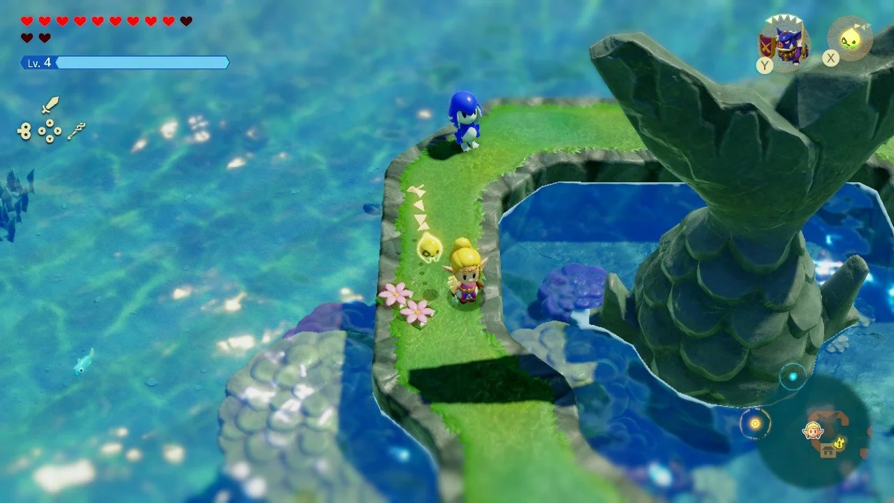 If you played Links’s Awakening remake, you’ll recognize the aesthetic right away. Super cute, charming toyetic character models create the world. They are shiny and vibrant and have the right amount of detail to bring the world to life. It’s really sweet seeing all the beloved races from the different versions Hyrule but in their 2D form. The designers blend old and new character models in a way that pays reverence to previous game versions of the characters while including the modern versions of them as well. One great example of this is the fish race. There are characters directly inspired by the Link to the Past and characters from Breath of the Wild. And in a cheeky nod - these two versions of aquatic citizens find themselves in a minor faction war that Zelda must help heal. The characters work in their own right in this game and still feel connected to the overall Zelda universe.